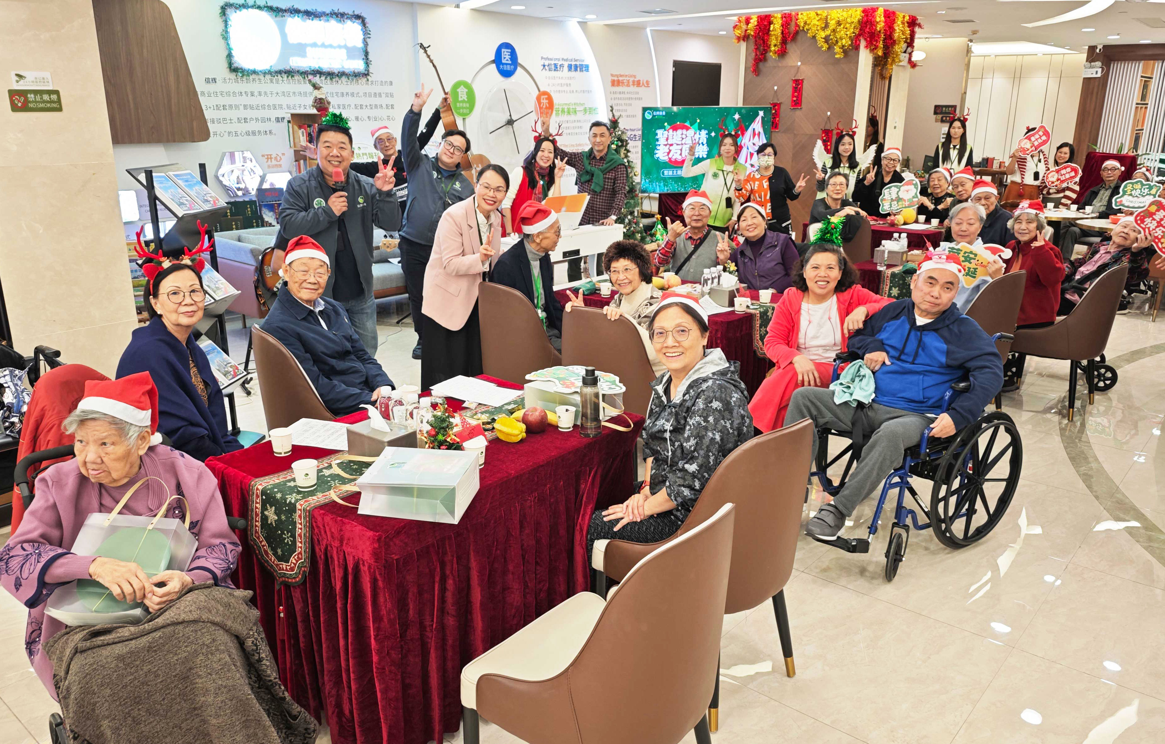12月25日,當聖誕的鐘聲悠悠敲響,信輝康養會所內早已是一片歡樂的海洋,“聖誕溫情,老友同樂”聖誕主題活動在此歡樂啟幕。長者們與信輝的工作人員齊聚一堂,共同開啟了一場溫馨難忘的聖誕之旅。